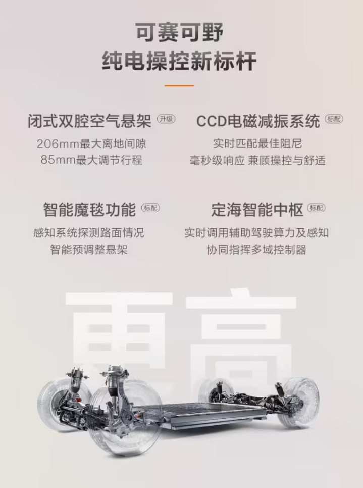 根据工信部网站8月份的申报信息,焕新极氪001将提供磷酸铁锂和三元锂两种电池包,分别来自吉曜通行和时代吉利。底盘方面,焕新极氪001升级闭式双腔空悬,最大调节行程达到85mm。还全系标配CCD电磁减震、智能魔毯、定海智能中枢等功能,可以在侧重舒适性和侧重运动性之间来回切换。