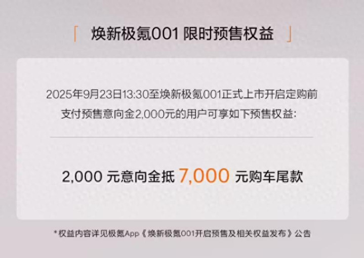 9月23日,焕新极氪001突然开启预售,一张疑似极氪工作群的截图显示,老款极氪001已经售罄,焕新款预售提前开始。不过上市节奏没变,还是按照计划安排在十月中旬,届时将同步交付。相比老款,焕新极氪001的升级可谓脱胎换骨,特别是全系900V平台的加入,直接有了和小米SU7掰手腕的底气。