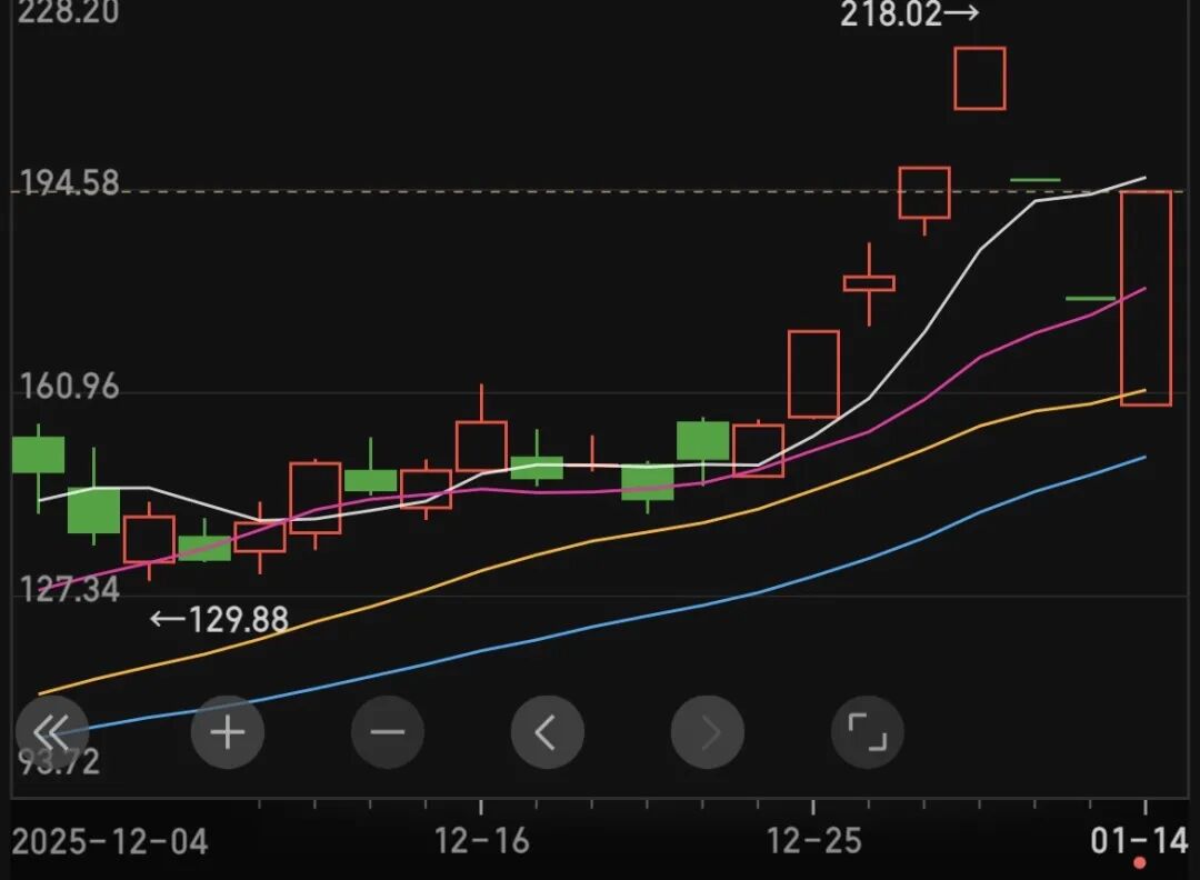 1月14日,天普股份股价涨停,截至收盘报194.26元/股。此前两个交易日则为跌停。